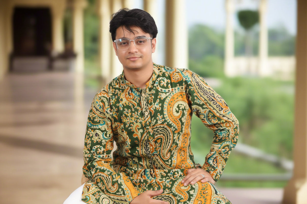 Men Paisley Printed Mandarin Collar Long Sleeves Cotton Straight Kurta|Souchii