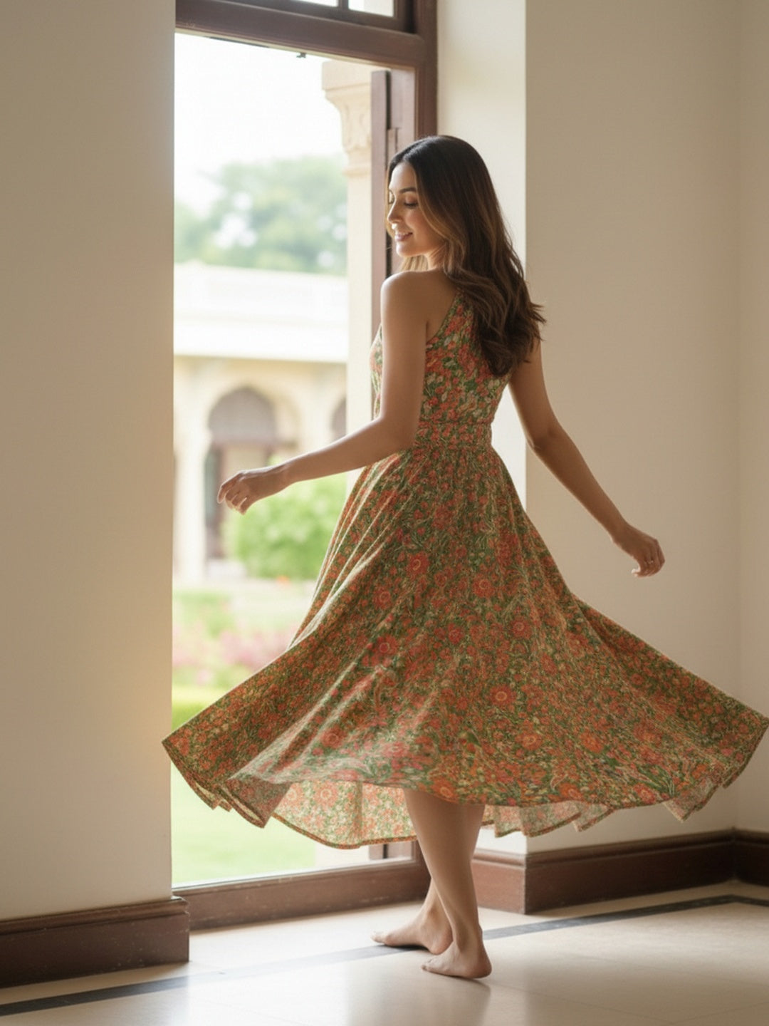 Fresh, feminine, and beautifully fluid — the Souchii Meadow Bloom Halter Midi Dress is designed to make every movement feel graceful.
